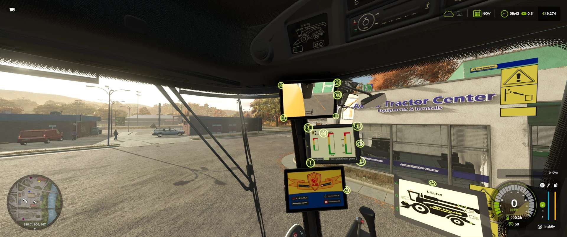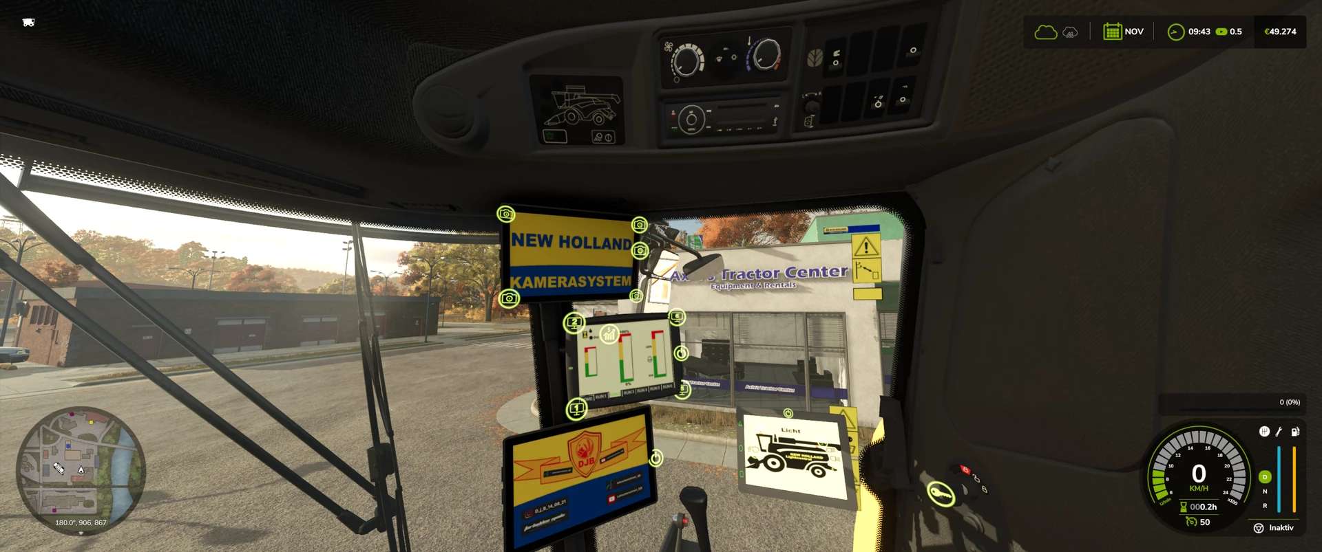 – Arbeitskameras, die ein Livebild auf dem neuen Monitor in der Kabine anzeigen. (Rückfahrkamera, 2 am Ausleger und eine an der Zugstange).