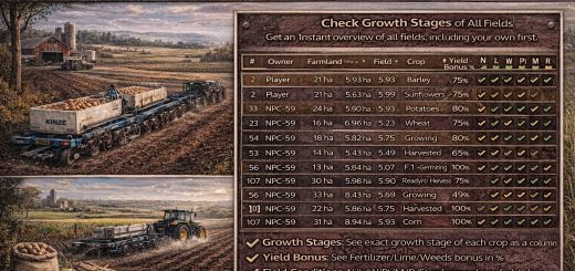 FS25 Andere Februar 22, 2026 by FS22mods · Published Februar 22, 2026 Farmland Overview Extended v1.0.2.0