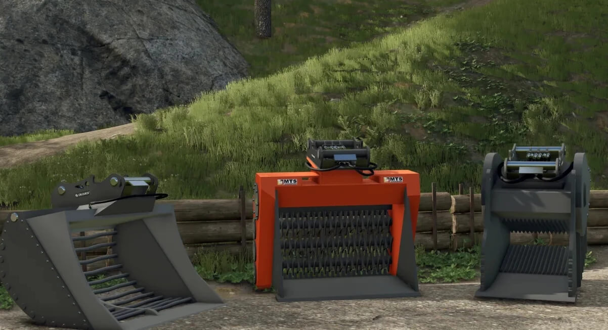 – MTS Bodenrecycler, Steinbrecher, hydraulische Siebschaufel (Zucker -> Rüben, Zuckerrübenschnitzel, Stein -> Kalk, Kies -> Sand, Erde -> Kies)