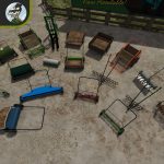 Ein Mähwerk, ein Wender, ein Mulcher, 150€, 1,2 Meter Arbeitsbreite, und ein Schwadmäher, 150€, 2,6 Meter Arbeitsbreite.