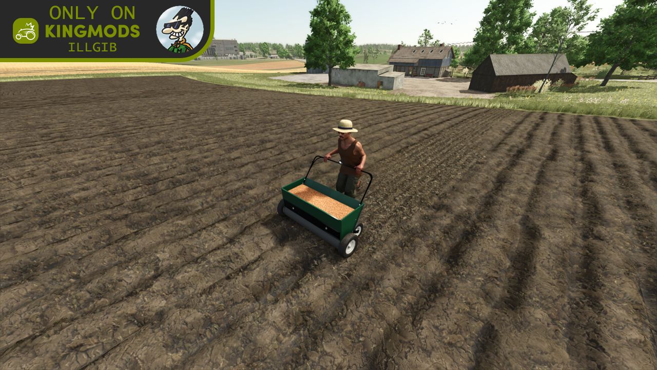 Eine Mehrfrucht-Pflanzmaschine, 300 €, 1,4 m Arbeitsbreite. Kann auf unterstützten Karten zusätzliche Feldfrüchte aussäen. Es werden Warnungen für fehlende Feldfrüchte angezeigt; diese können ignoriert werden.