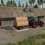 Diese Mod enthält ein Silo, das Sie an Ihren Paletten-Spawnpunkten platzieren können, um Ihre Paletten vorübergehend zu lagern. Sobald Sie bereit sind, sie zu transportieren, verwenden Sie einen der enthaltenen Anhänger, um Ihre Produkte aufzuladen und zum Verkauf zu bringen.