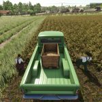 Eine optionale Mod ermöglicht das Entladen von Erntegut in eine befüllbare Palette. Kartoffeln und einige Gemüsesorten können laut Spieldesign bereits entladen werden; ich habe die fehlenden hinzugefügt.