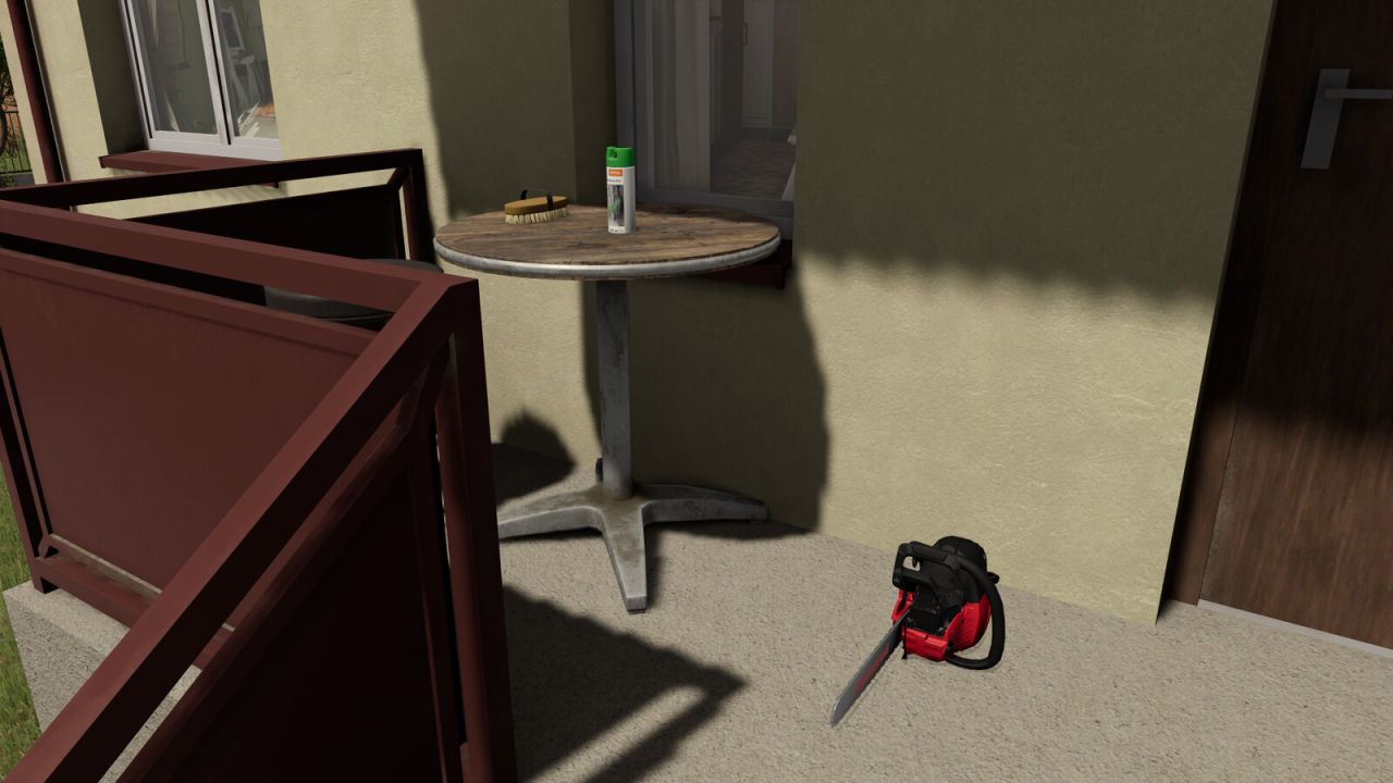Platzierbare Objekte für: Kettensäge, Sprühdose, Pferdebürste.