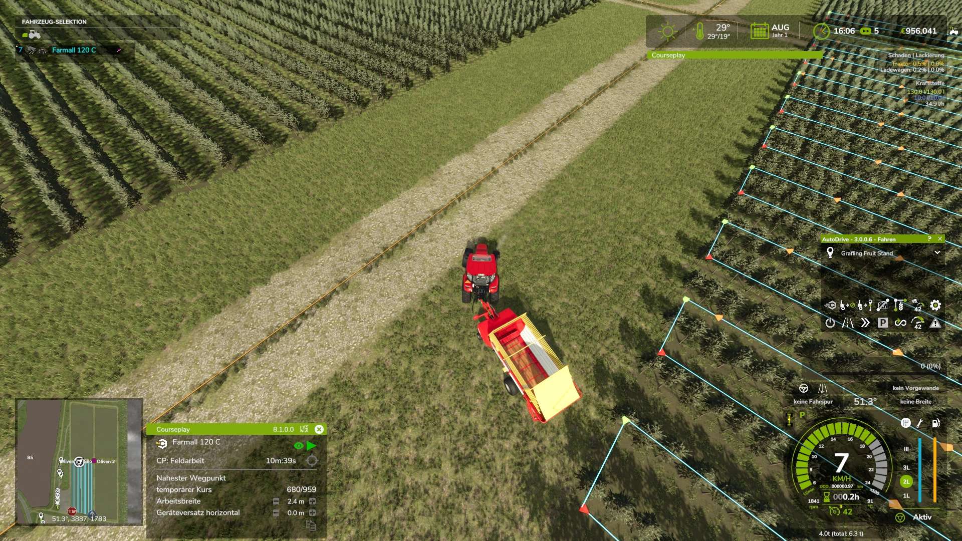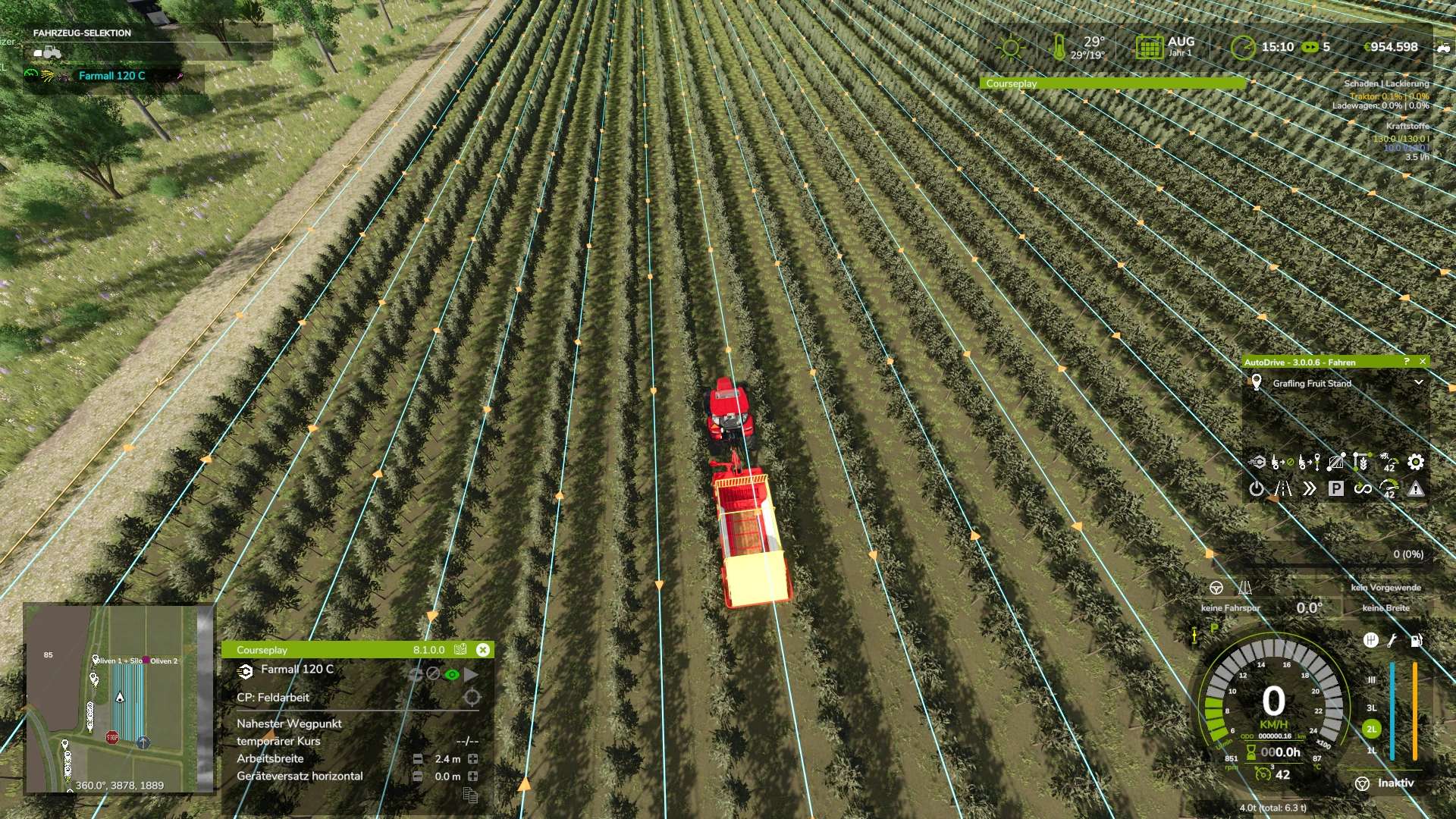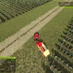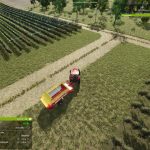 Da der Ladewagen sehr schmal ist, kann er problemlos durch die Wein- und Olivenhaine fahren, um Steine aufzusammeln.