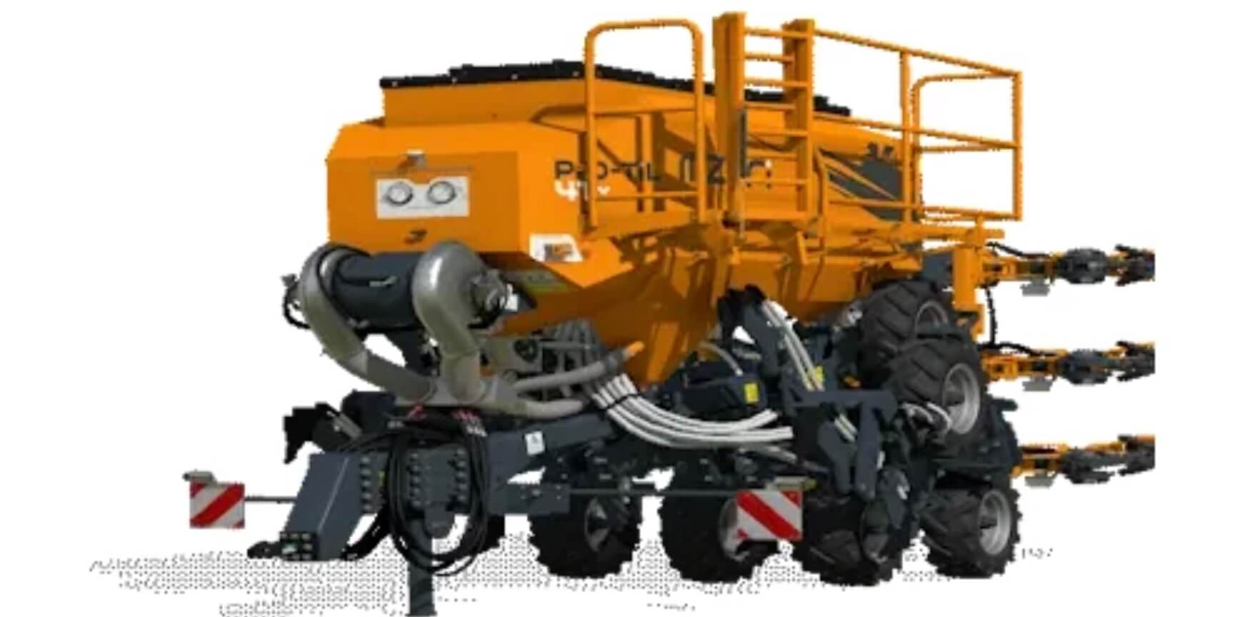 Die Standard-Mzuri-Sämaschine aus LS25 mit zusätzlicher Tiefenlockerungsfunktion und der Möglichkeit zur Vereinzelung des Getreides (was in der Realität auch mit der 6-m-Version möglich ist).