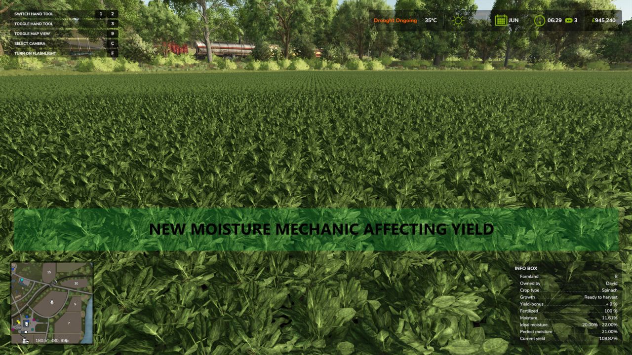 – Fügt den Feldern einen Feuchtigkeitsmechanismus hinzu. Jede Pflanzenart hat einen idealen Feuchtigkeitsbereich. Innerhalb dieses Bereichs erhöht sich der Ernteertrag.