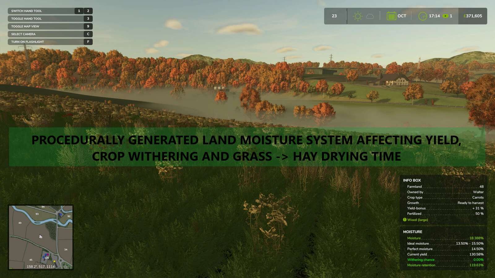 – Automatische Gras -> Heutrocknung basierend auf Feuchtigkeit hinzugefügt, weitere Details oben