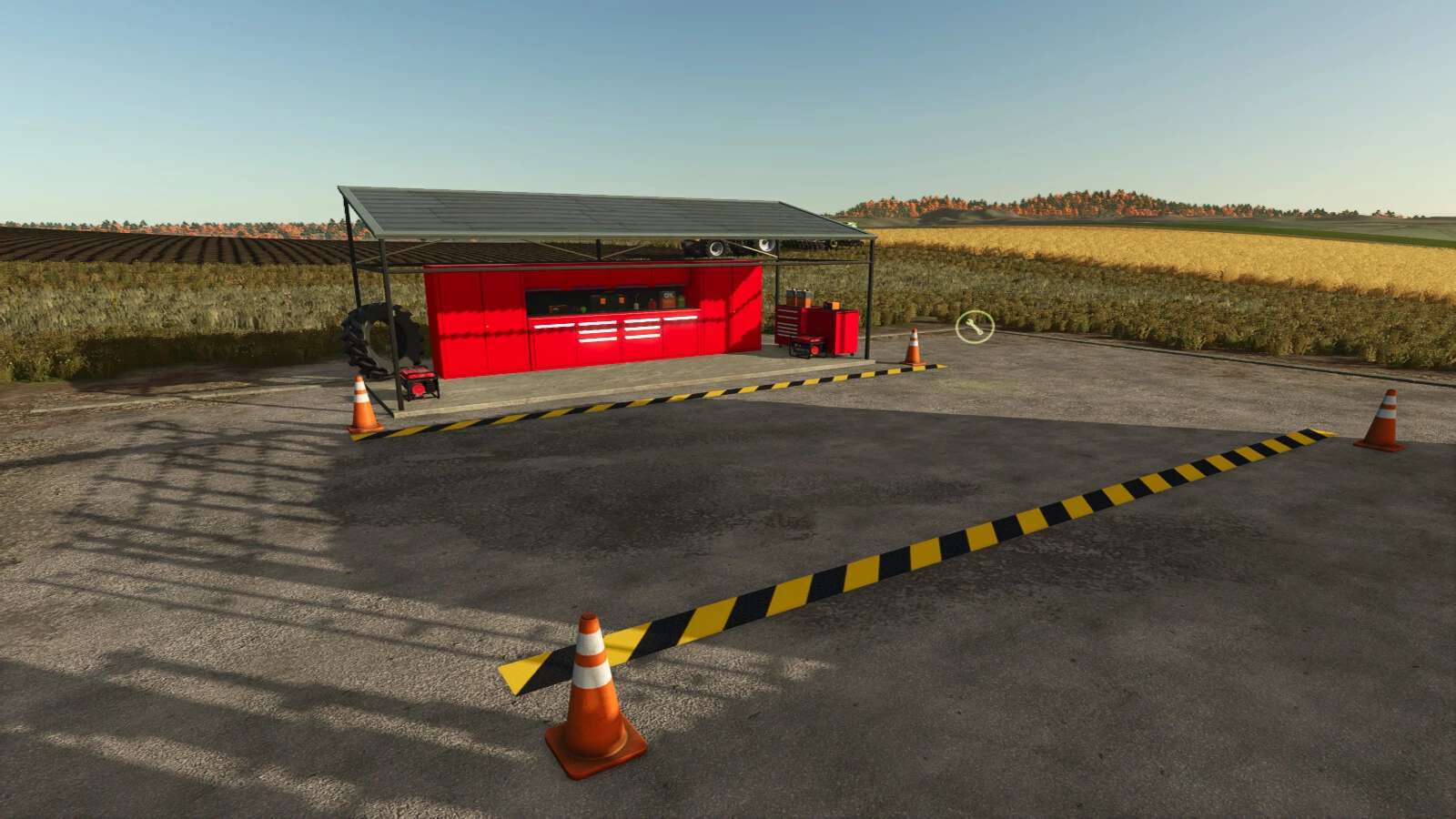 Eine kompakte Werkstatt, perfekt für den Alltag auf dem Bauernhof, die Funktionalität und Platzersparnis vereint.