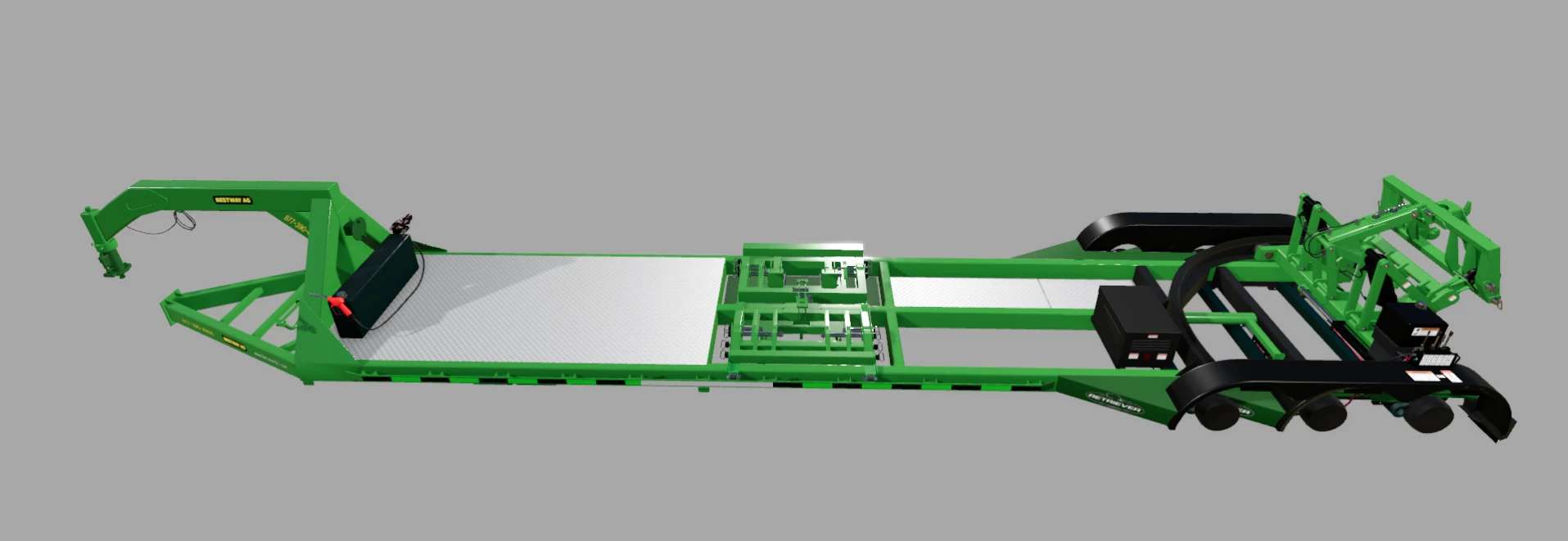 Mit dem Retriever™ sind keine Tieflader und kein Traktor oder Gabelstapler mehr nötig, um Dreipunktgeräte vom Hof zu verladen…