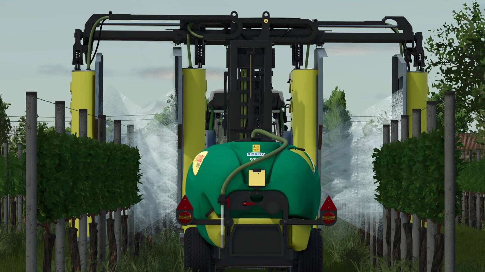 Die für die Behandlung von Weinbergen entwickelte Maschine ZEPHIR ermöglicht die Rückgewinnung des Produkts, das den zu behandelnden Teil nicht erreicht. Sie ermöglicht die Bearbeitung von zwei vollständigen Reihen bei jedem Durchgang mit einer Breite von mindestens 2 m und höchstens 3 m.
