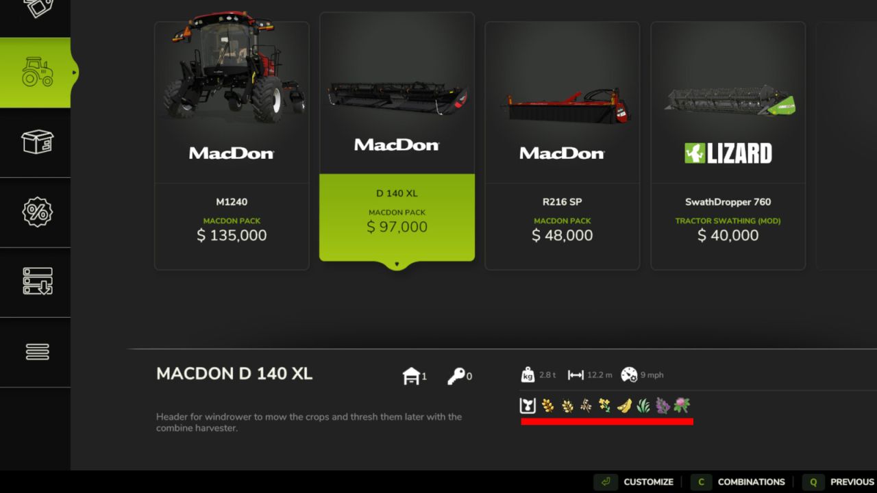 Dieser Mod ermöglicht Schwadern das Mähen von Gras (und Grasalternativen). Swathing Plus ist mit allen Schwadgeräten/-köpfen kompatibel, einschließlich des Macdon-Pakets.