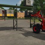 Ein robustes Regal für den landwirtschaftlichen Betrieb. Es bietet Platz für bis zu 18 Paletten oder kann als Werkzeugaufbewahrung für Frontlader genutzt werden.