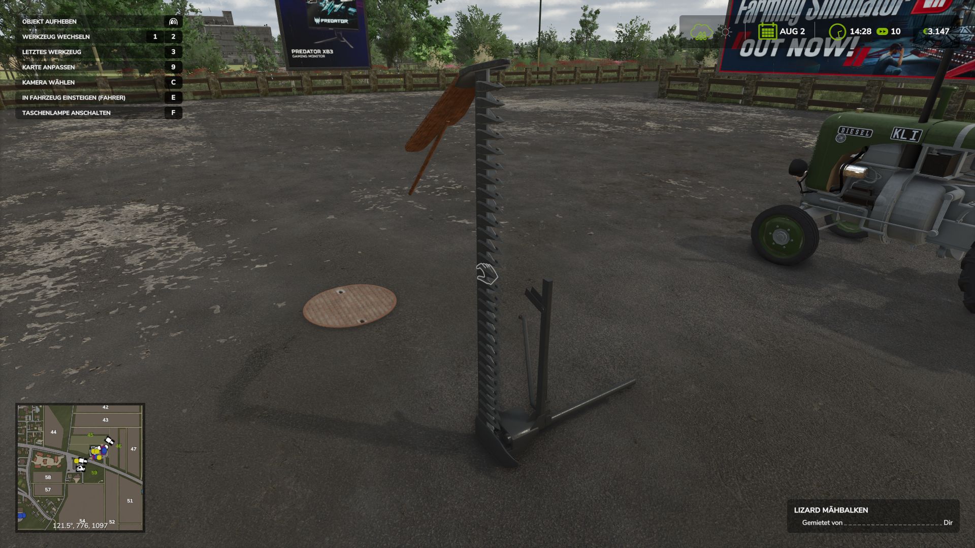 Die Halterung ist nun Teil des Mähers selbst und nicht mehr des Traktors, was zu einer wesentlich stabileren und realistischeren Konstruktion führt.