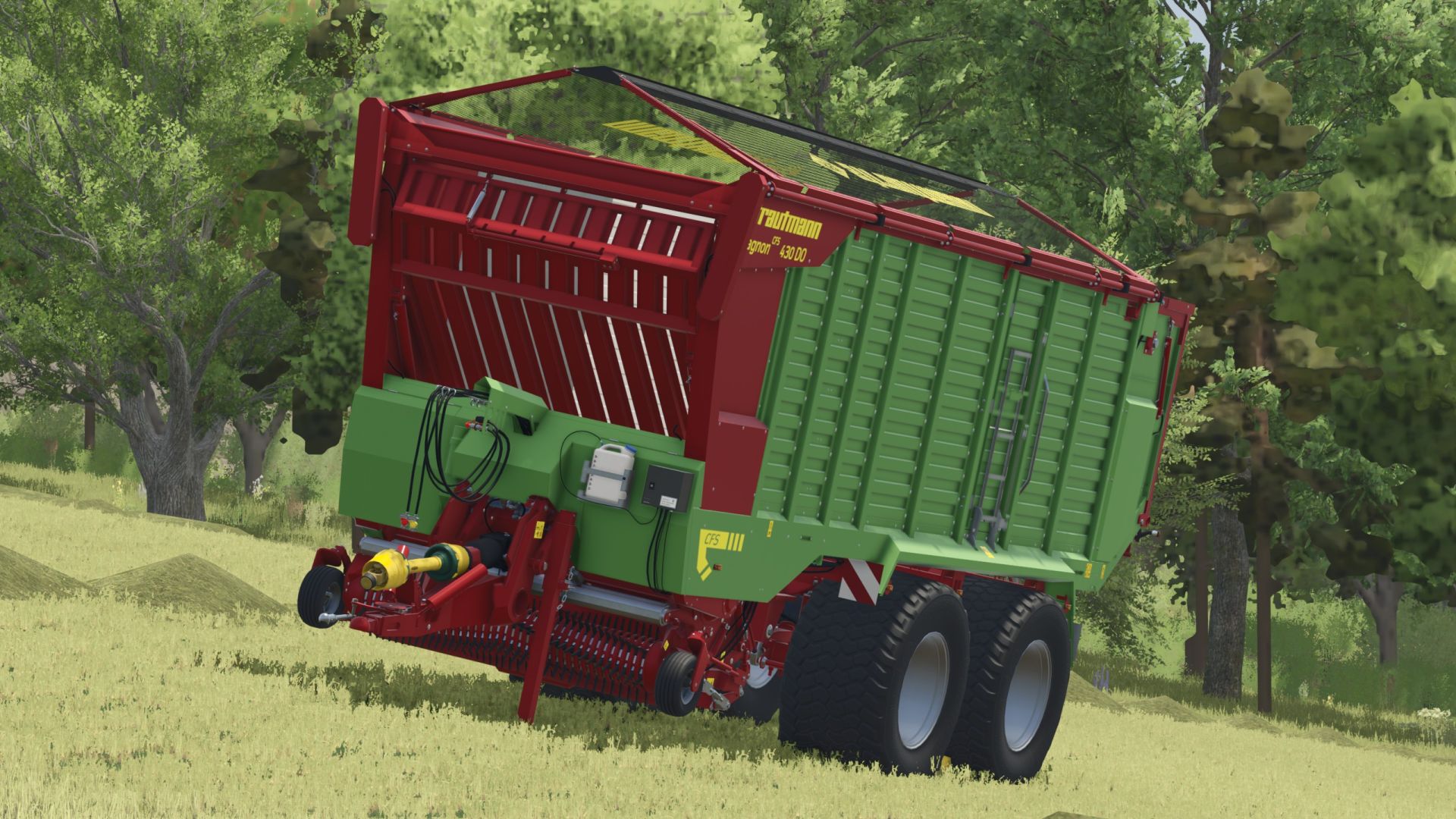 Strautmann Magnon 430 CFS DO Kurzschnitt-Ladewagen. Ich habe ihn von einem 22er-Kaliber auf ein 25er-Materialsystem umgebaut. Mit Regentropfen usw.