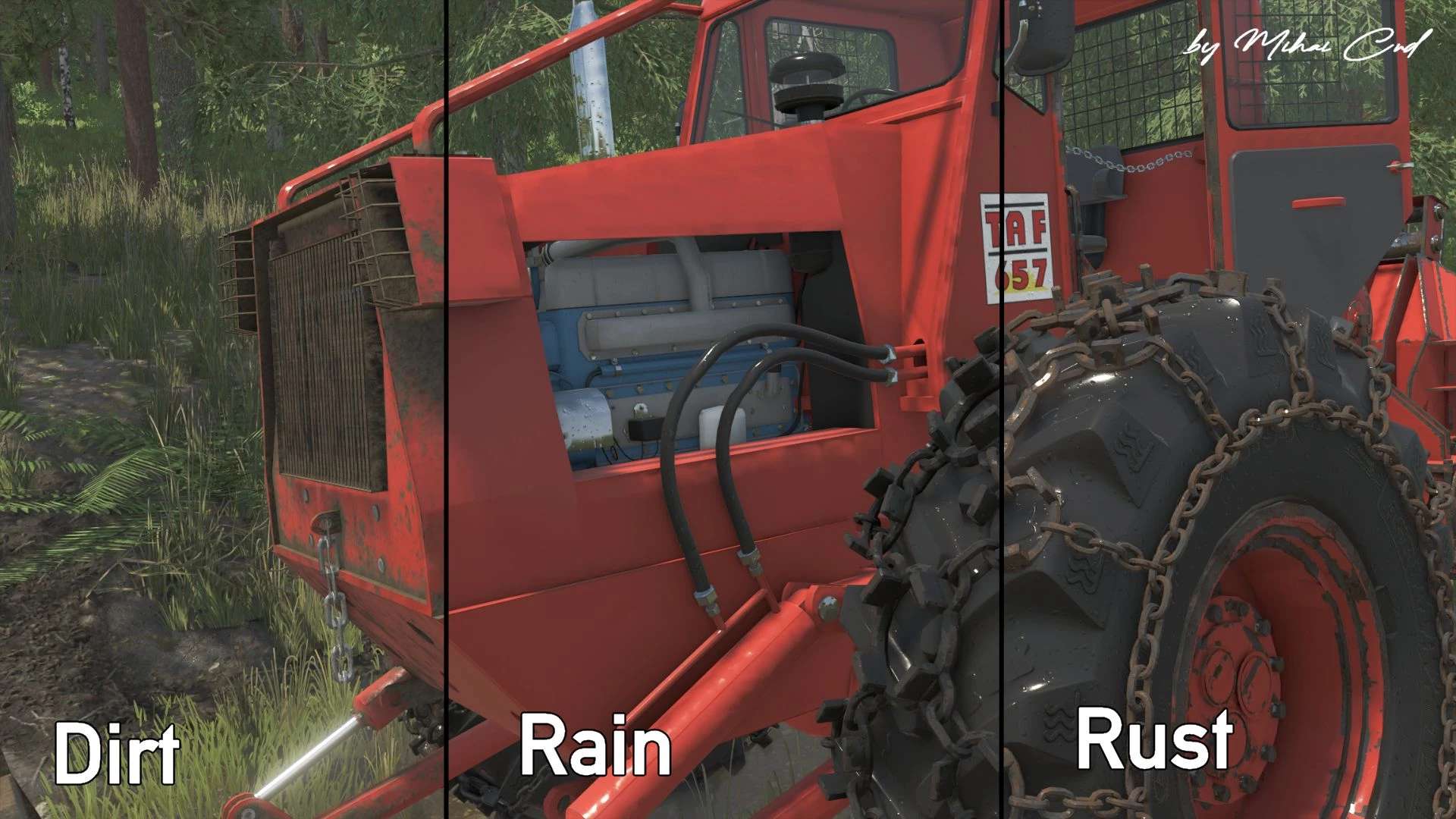 Der TAF 657 – IRUM SA ist ein schwerer, knickgelenkter Forsttraktor. Die Modifikation basiert auf dem Farming Simulator 22 und verfügt über ein überarbeitetes 3D-Modell.