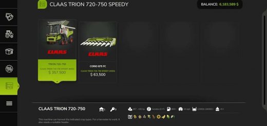 FS25 Packs September 14, 2025 by FS22mods · Published September 14, 2025 · Last modified September 13, 2025 CLAAS TRION 720-750 Speedy v1.5.0.0