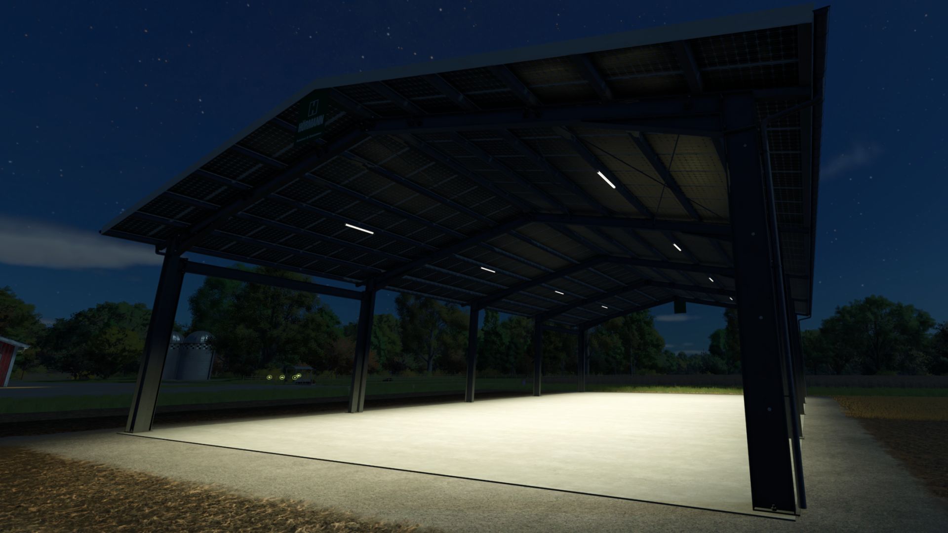 Solarpanel-Unterstand im Basisspiel mit hinzugefügten Lichtern